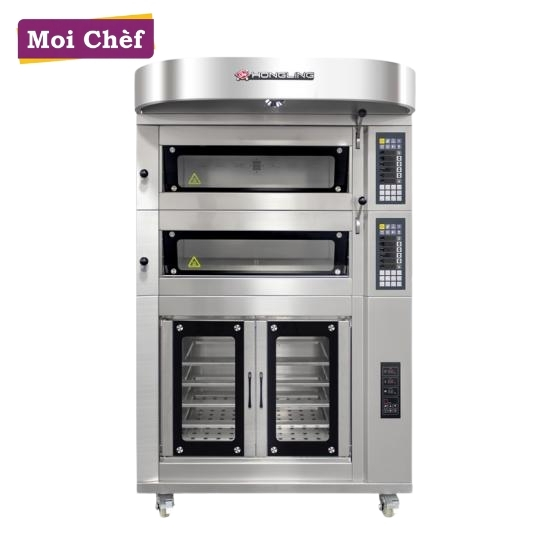 A two-tier, four-tray gas oven with two separate levels and a proofer. This design allows you to grill multiple foods at different levels at the same time, improving cooking efficiency.