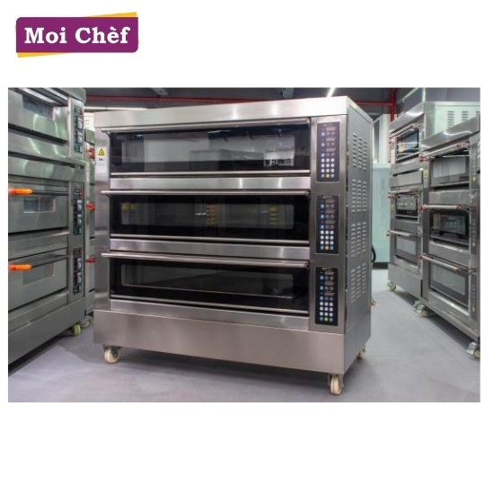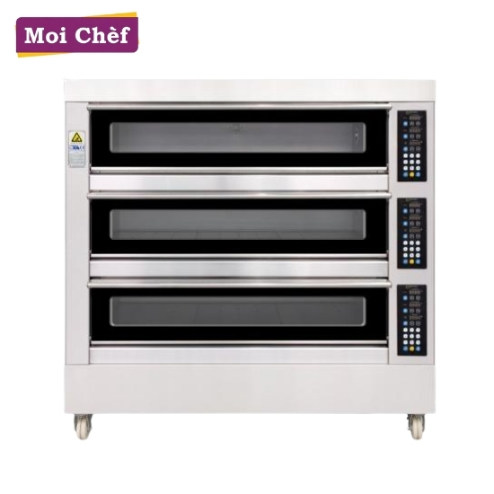 This 3 deck 9 trays electric oven delivers stable and even baking performance with precise temperature control, making it easy to operate.It is ideal for bakeries, central kitchens, hotels, and commercial baking operations..
