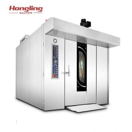 This Rotary Rack Oven features a steaming function, SS#201 construction, Schneider, Omron, and CHAO components, double-layer 145mm PU insulation, a 25–300℃ range, and an excellent hot air circulation system.